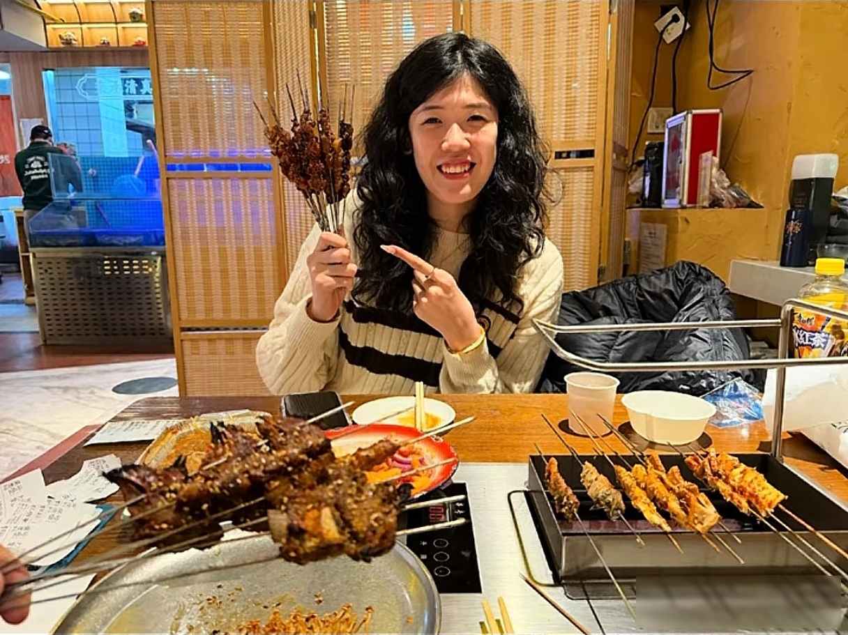 李盈莹最近出现在哈尔滨,她不是去参加比赛,而是回到家里吃烤肉、看二人转,
