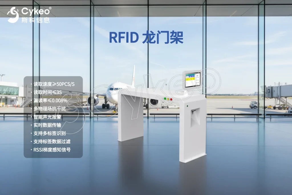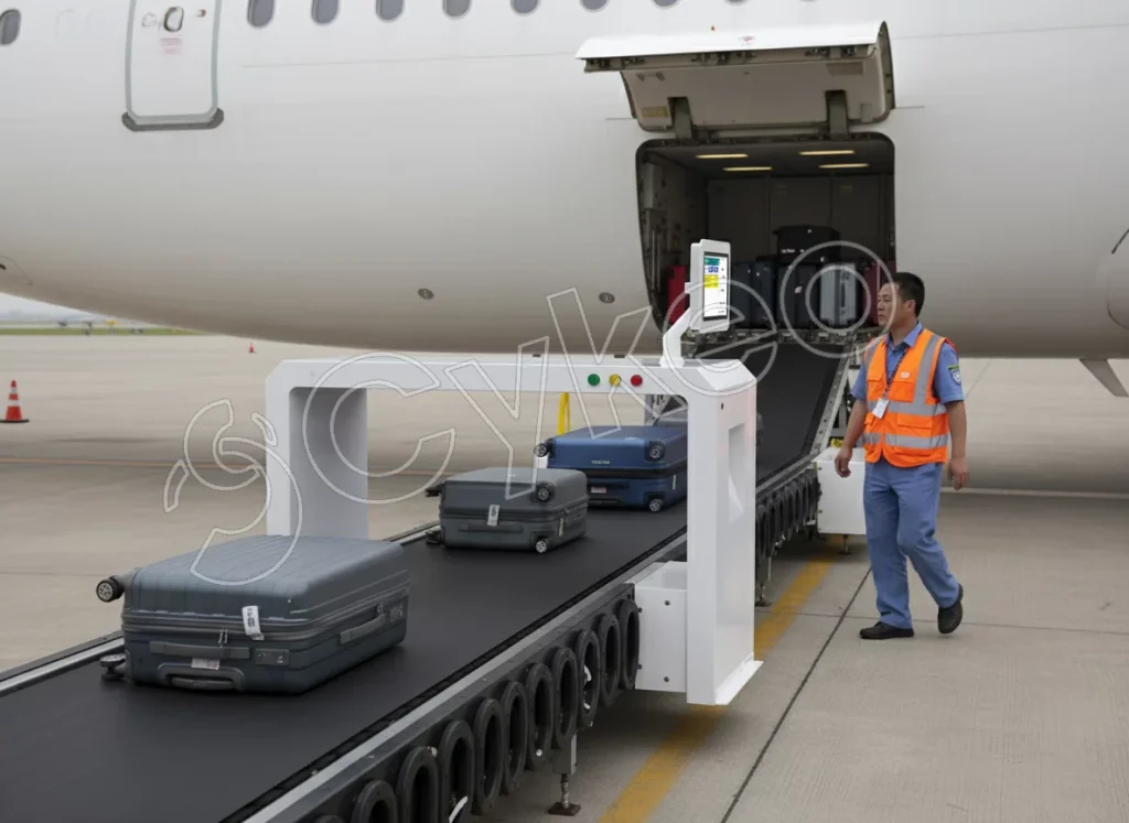 在机场装机环节,RFID设备通常安装在传送车龙门架上,用于自动读取行李信息并与后台计划数据核对。基于这一流程特点,斯科的CK-T8B RFID龙门架在结构设计和天线控制上进行了针对性优化,使其在开放式装机环境下依旧保持高效、稳定的识别效果,为数量核对、目的站核验、舱位匹配以及紧急查找提供了可靠支撑。