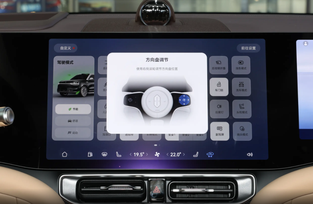 在后排,2025款问界M9也是进行了科技创新,比如在玻璃方面,我们可以通过旋钮来调整后排车窗玻璃的透明程度,从而保障我们后排乘客的静谧性,并且在后排,该车还采用了一块类似于手机一样的控制屏幕,大家是可以将这块屏幕直接闹起来的,在其中我们可以调节座椅的通风和加热以及按摩等功能,如果没电的话,那么还可以将这块屏幕放回原位,那样它就能自己进行充电,使用起来还是蛮方便的。