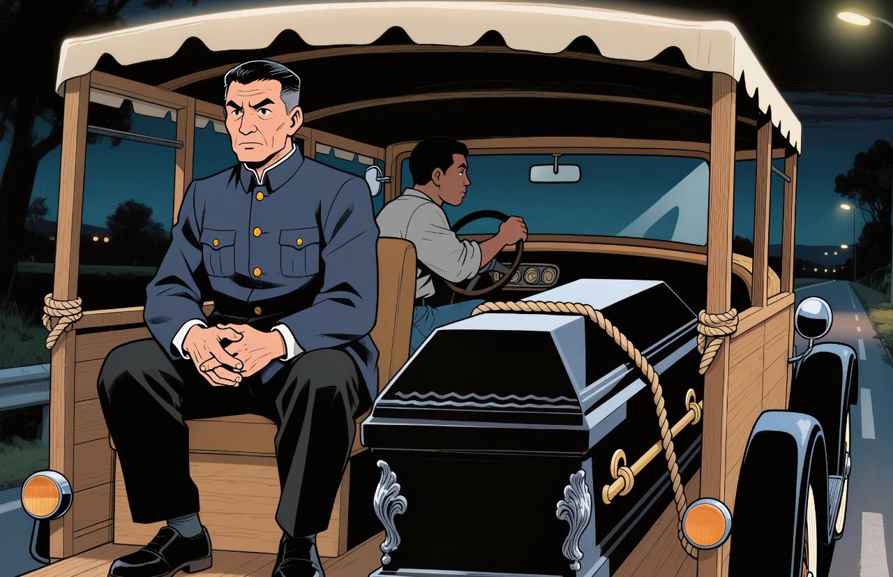 赵乾坐在运送棺材的篷车上,司机是个外地人,连夜赶路。