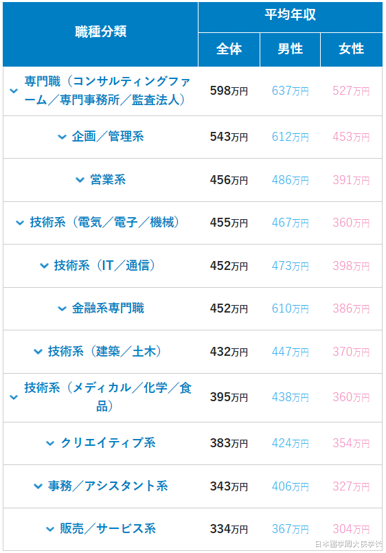 日本理工科专业普遍“钱景”优秀,日本薪酬网站公布的薪资排行榜里,一定少不了理工类专业。根据日本网站求职网站Doda公布的职业年收入排名,理工科相关的技术类职位纷纷上榜。
