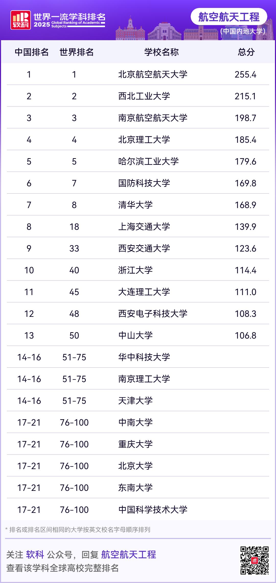 中国内地高校在21个学科排名世界第一,相比去年增加3个,其中清华大学有7个冠军学科,冠军学科数仅次于美国的哈佛大学(11个),上海交通大学有2个冠军学科,北京航空航天大学等12所高校各有1个冠军学科。中国高校冠军学科数量逐年增加,显示出中国高校的学科建设在服务国家战略和产业需求的牵引下正在加速突破,一批高校在各自的优势学科上正在实现从追赶者到全球引领者的转变。