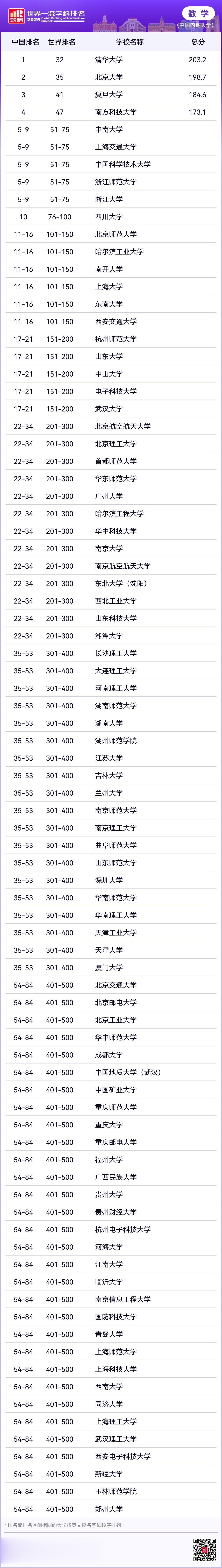 2025年11月18日,高等教育评价专业机构软科正式发布2025“软科世界一流学科排名”(ShanghaiRanking's Global Ranking of Academic Subjects,简称GRAS)。2025年排名新增人工智能、机器人科学与工程两个学科,排名学科数达到57个,覆盖理学、工学、生命科学、医学和社会科学五大领域。GRAS的排名对象包括全球3000多所大学,最终发布的榜单展示了92个国家和地区的2000余所高校的近2万个学科点。