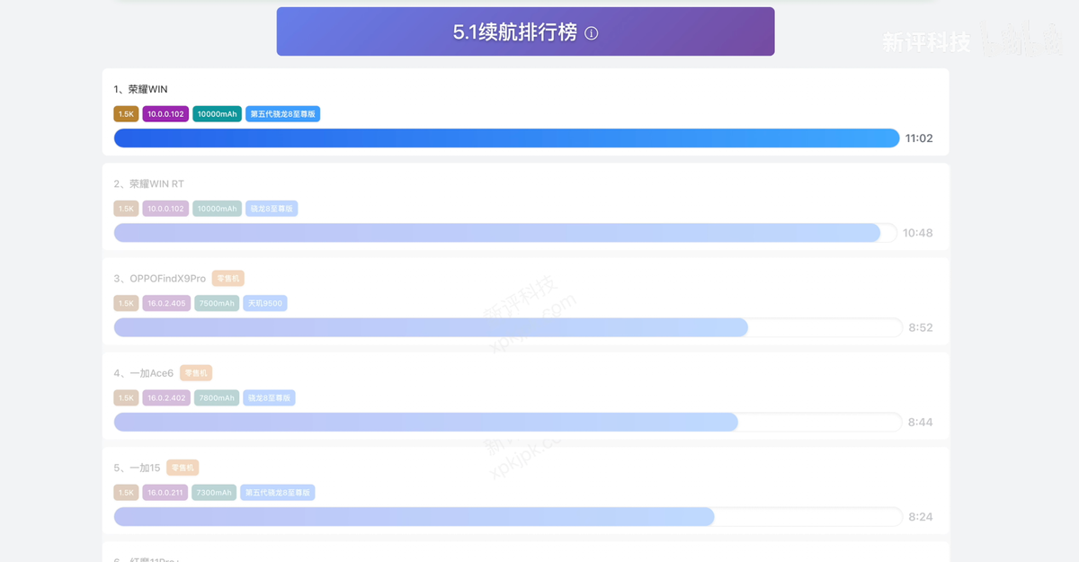 新评科技的续航测试模型中,荣耀WIN毫无悬念地拿下了第一名。在其他媒体的测试中,荣耀WIN的续航成绩同样也是断档领先的。对于重度游戏玩家而言,10000mAh的电池容量意味着更长的游戏时间,无需频繁充电打断游戏节奏,随时随地想玩就玩。