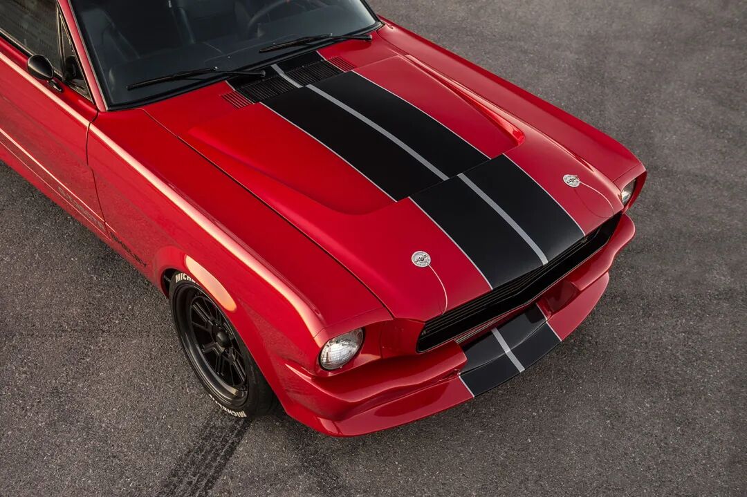门把手、铰链和子弹式后视镜来自Ringbrothers,由坯料铝铣削而成。齐平安装的玻璃比原厂经典野马上的看起来更现代(坦白说,也有点格格不入)。定制的LED尾灯也是如此,不过它们至少保留了纤细的三横条样式。