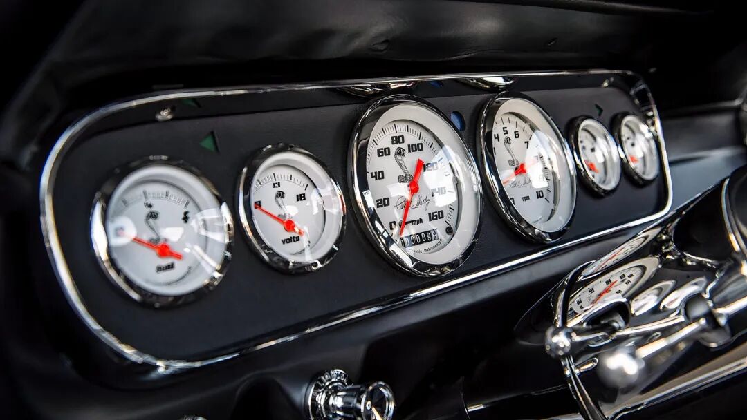Trick Rides只发布了一张内饰照片,显示它采用了Classic Instruments仪表组,六个仪表盘面都带有盘绕的眼镜蛇标志,车速表和转速表上则有卡罗尔·谢尔比的签名,这是GT350TR的一个不错的小细节。