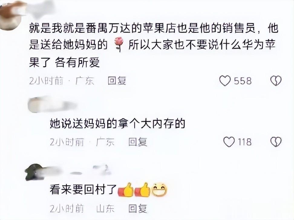 之后,评论区有人自称是销售员,表示确实有买苹果手机,但是给妈妈买的。