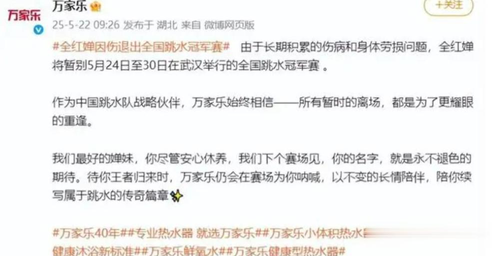 据悉,万家乐与她的缘分早已生根,2023年起这个品牌就全程陪伴跳水梦之队。