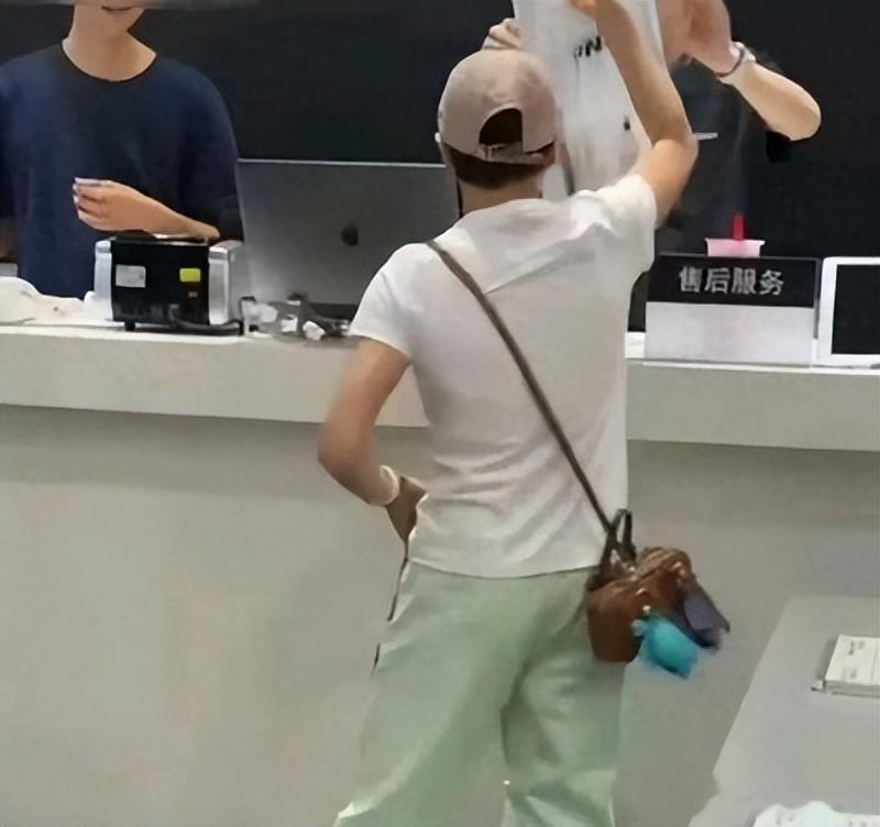 从网友晒出的照片来看,她在一家苹果专卖店买手机。