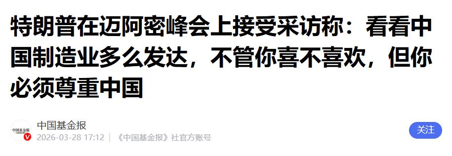 这位以前主打对华强硬的前总统,直白表态:必须尊重中国的成就,美国在硬核领域确实拿中国没办法。这话是美国不得不承认的事实。中美贸易战打了七八年,美国靠加关税施压,最后反倒拖累自己,通胀居高不下。