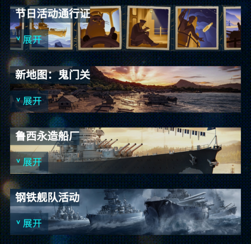 还有节日活动通行证、新地图鬼门关、鲁西永造船厂等更多活动,感兴趣的舰长可以多多关注官方发布的消息,掌握更多开箱“秘籍”和不少可以薅羊毛的福利!这波千万不要错过了!