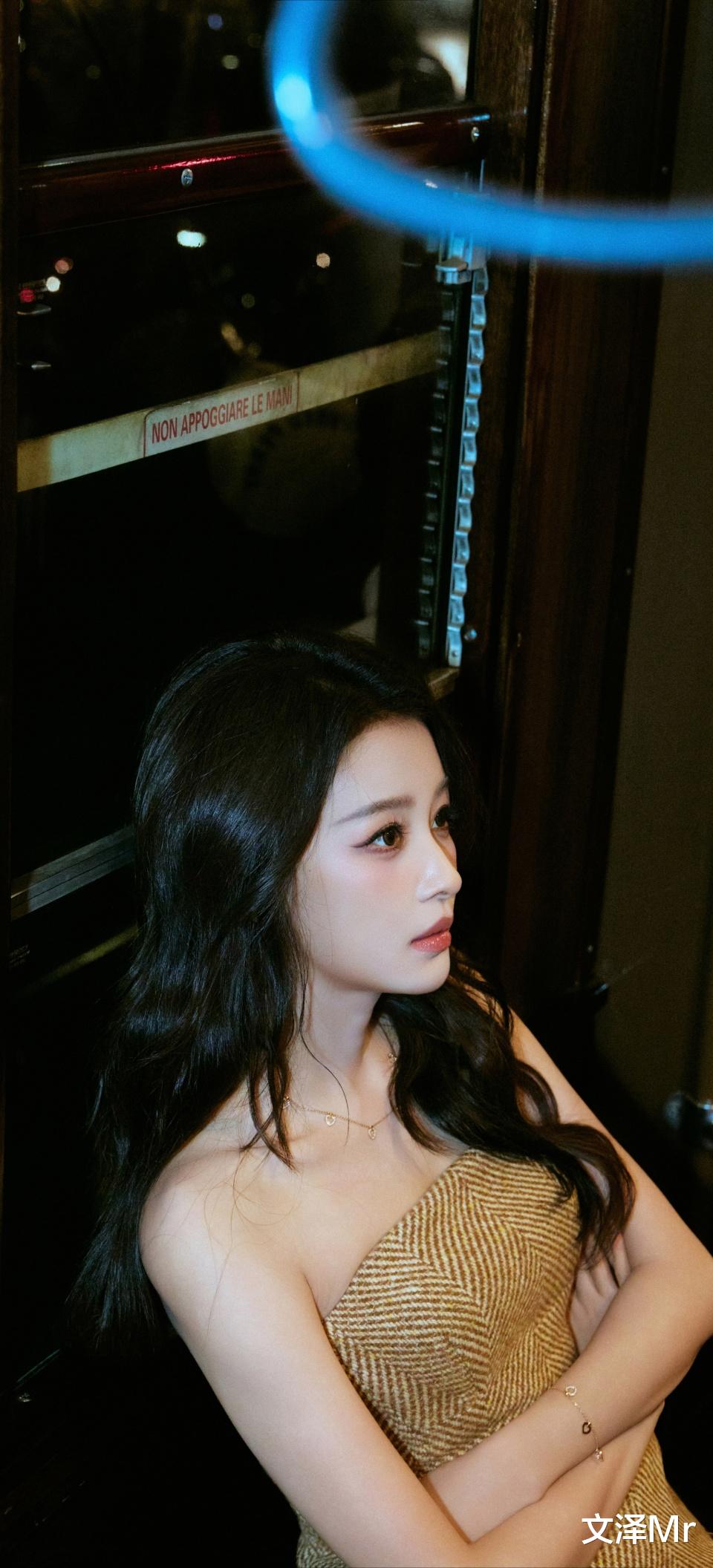 当孙怡身着这件带有精致纹理的抹胸短裙,倚靠在复古感十足的木质框架旁时,瞬间将人拉回了充满韵味的旧时光。