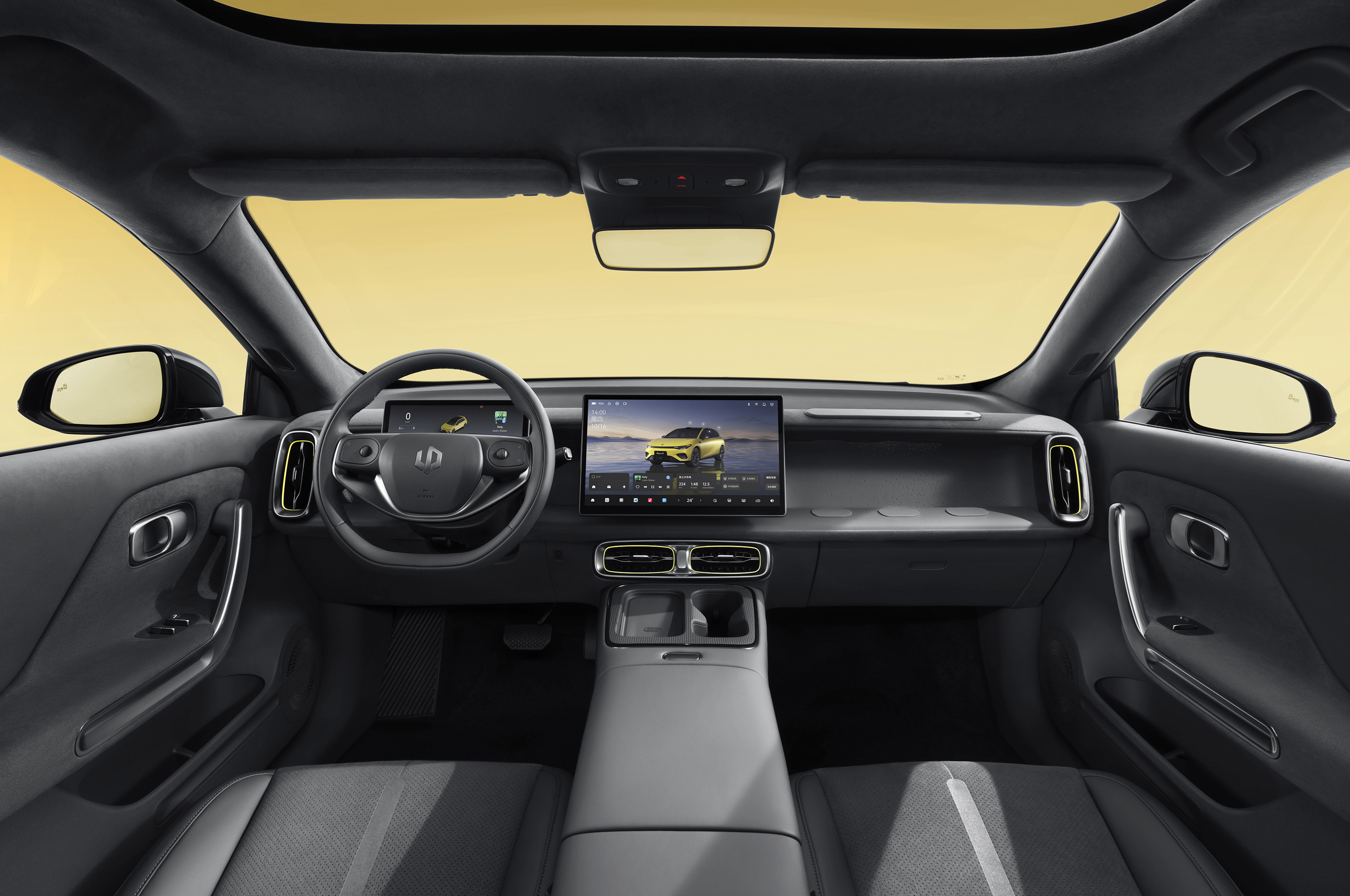 进入车内,记者发现零跑Lafa5运用大面积仿麂皮超纤绒材质包裹,全系采用黑化哑光枪灰镀铬饰件布局,并提供速域紫、驰影灰、竞速灰共3款配色选择,其中,竞速灰将运用在高配车型上。配置方面,新车配备8.8英寸的液晶仪表盘和14.6英寸的2.5K高清中控屏,车机为高通骁龙8295P旗舰芯片,采用Leapmotor OS 4.0 Plus,支持3D灵动桌面、一镜到底沉浸式交互、智慧分屏模式+多任务操作等。新车还配备了DeepSeek+通义千问AI语音大模型。