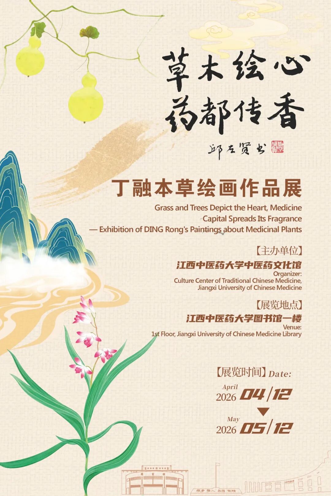 于当今时代而言,这样的展览更具深远意义:它以艺术为桥梁,打破了专业与大众之间的壁垒,让更多人看见中医药文化的审美价值与文化底蕴;它以本草为媒介,传递着“尊崇自然,珍视生命”的东方智慧,为中医药文化的传承与创新开辟了新路径;它以绘画艺术为载体,让中医药的文化名片愈发鲜亮,向世界展现中国传统医药学的独特魅力。本次展览展期自2026年4月12日起至5月12日结束。展览地点位于江西中医药大学图书馆一楼大厅。