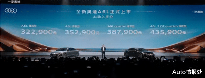 日前,Auto情报处从一汽奥迪官方处获悉,全新一代奥迪A6L正式上市,奥迪A6L定位中大型豪华轿车,换代车型供推出8款配置,指导价为32.29万元-43.59万元,相比上一代车型,外观和内饰进行了重新设计,动力系统也进行了升级,直接竞争对手为宝马5系,奔驰E级。