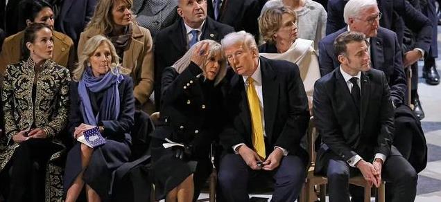 随后在巴黎圣母院内,特朗普压轴登场。身后还跟随着效率部长,马斯克两人一入场就受到了在场人的热烈鼓掌,特朗普和卢森堡大公亨利夫妇、比利时国王夫妇、摩纳哥亲王热情招呼。