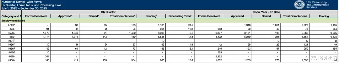 近日,美国移民局更新了2025财年第四季度(2025年7月至9月)职业移民递件和审批的最新数据,引发了移民市场的高度关注。