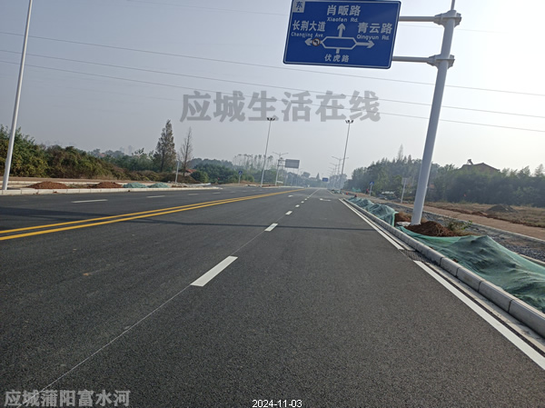 应城两河新区-横二路项目2024年11月份进展,横二路施工路段东起点为老县河边的沿河大道,向西延长到富水河边的富水东路,全长约2.3公里,宽30米。这是两河新区继王桥路南延、横五西路、横三西路后,又一条施工的道路,即将完工。这条路往东将对接开发区横二路,也就是天伦首府门口的那条路,往西经过双河家园门口到富水河堤,目前已经铺完沥青。