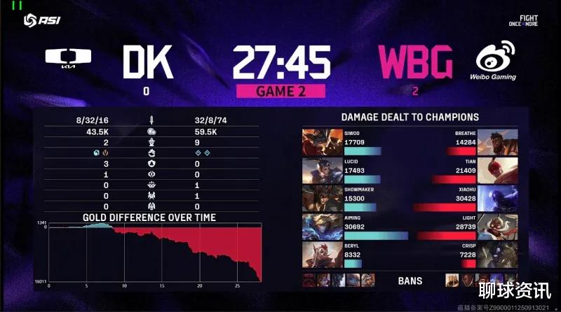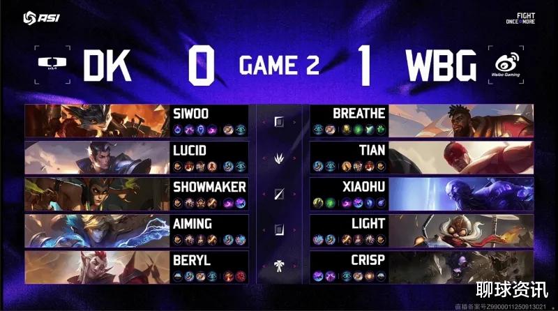 WBG 在第二局中通过 BP 针对和战术执行,进一步巩固了对 DK 的压制力。尽管 DK 在首局调整了阵容,但 WBG 凭借选手个人能力和团队协作,将比赛节奏牢牢掌控在手中。