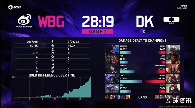 WBG 在第一局中通过 BP 针对和战术执行,完美诠释了 “以团战为核心” 的运营思路。尽管 DK 在对线期一度反制,但 WBG 凭借中后期的决策优势和选手个人能力,将比赛节奏牢牢掌控在手中。这场胜利不仅为 LPL 赛区取得开门红,也为后续对阵 LCK 队伍提供了宝贵的战术参考。
