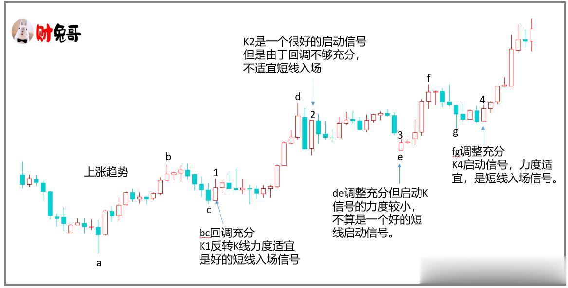 先要明确是上涨趋势的回调、还是下跌趋势的回调,亦或是震荡区间的波动,因为回调是原趋势风险的释放,这个回调力度不宜较小,这样风险得不到充分释放,也不宜回调力度过大,否则恢复原趋势阻力大或发生趋势反转,因此回调幅度要相对适宜,其次是回调结束的启动K线,不宜力度过大,这样消耗的动能过大,短期容易出现震荡或启动失败。