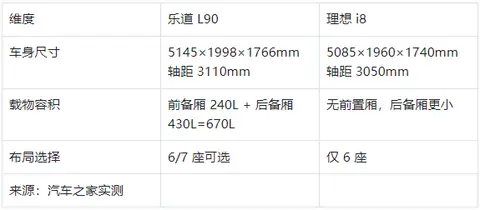 同为六座车,乐道 L90 和理想 i8 的差距真不小: