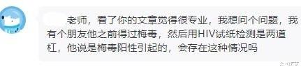 后台收到一位粉丝的留言,问题还挺有代表性的——“我朋友之前得过梅毒,最近用HIV试纸测出来是两道杠,他说这是之前梅毒阳性引起的,真的会这样吗?”