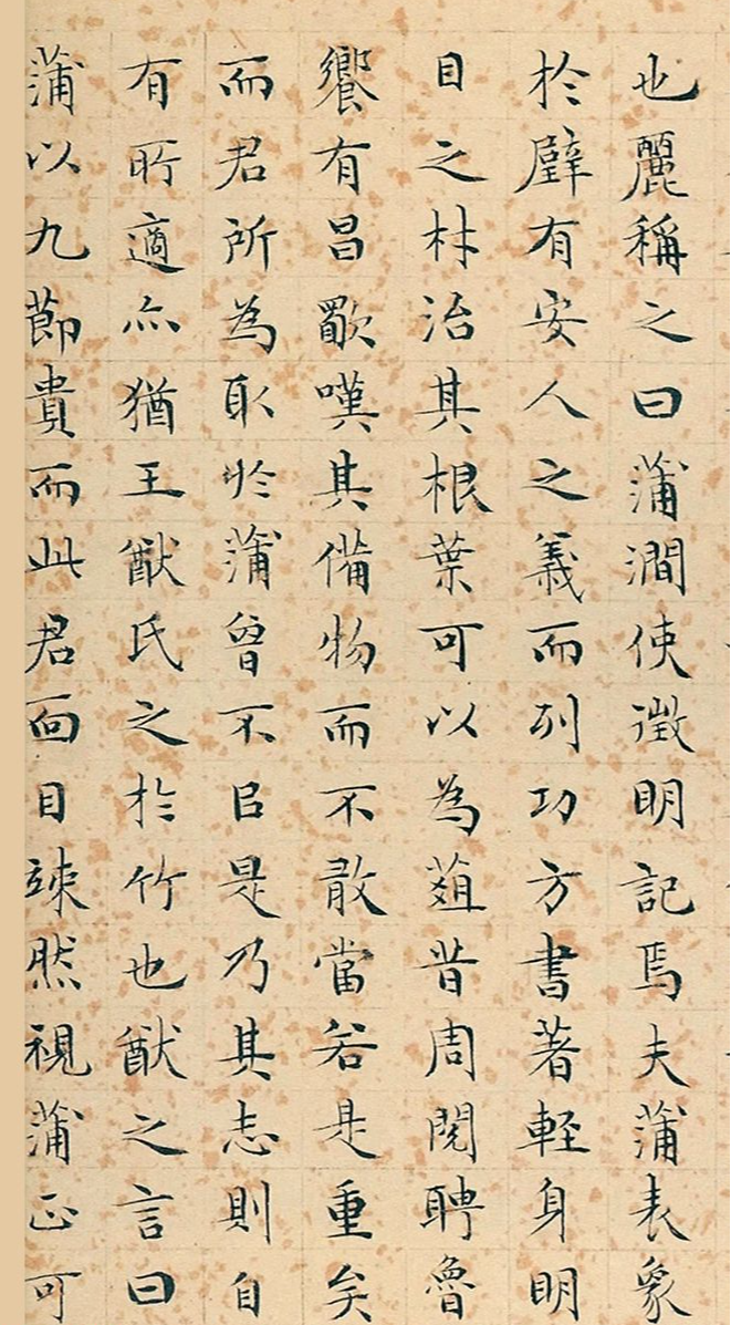 好,咱们今天就坐下来,好好聊聊文徵明47岁时写的这件小楷《蒲涧记》。你可能听说过文徵明是小楷界的顶尖高手,但你可能不知道,他四十多岁写的这件作品,恰恰是他风格成熟定型的关键节点。咱们不看那些玄乎其玄的赞美,就实实在在地看纸面上的笔法,你会发现,这时候的文徵明,已经把前人的东西消化干净,形成了自己一套清晰、稳定的写法。咱们先看最基本的——点画。这件作品里的点画,干净到什么程度?几乎每一笔的起笔、行笔、收笔,动作都交代得清清楚楚,不带一点儿含糊。比如那个“点”,他可不是随便按下去就完事了,多是尖锋入纸,顺势下按,再轻轻回锋或者向下一笔的方向出锋,有个小小的“点头”动作,显得饱满又有精神。这种对笔尖极其精细的控制力,就是他功夫的体现。你临帖的时候要是忽略了这个,那就只学了个外形,没学到精髓。再看横竖这些长线条。他的横画,一般不是水平的,常带着微微上仰的姿态,但角度控制得极其精微,不过分,显得既精神又稳重。起笔多是露锋轻入,有个很细小的切笔动作,然后中锋行笔,力量均匀地送到结尾,收笔时又是轻轻一顿,回锋。整个笔画看上去清瘦,但内在的骨力很足,这就是我们常说的“骨胜于肉”。你试着用手在空中比划一下这个动作,就能感受到那种“提按”的微妙节奏了。说完了点画,咱们再退远一步,看看这个字的结构。文徵明小楷的结构,最大的特点就是“稳”,但不是那种傻大黑粗的笨稳,而是透着巧妙安排的“巧稳”。你仔细看每个字,它的重心都摆得非常正,给人一种安详、从容的感觉。他不会为了追求险峻,把字写得东倒西歪。但同时,你又不会觉得单调。为什么呢?因为他善于通过笔画之间的疏密对比来制造变化。比如一个字里,某些部分笔画挤得比较紧,另一些部分又刻意放得比较疏朗,这一紧一松之间,节奏感就出来了,字也就“活”了。还有一个显著特点,就是他的字大多呈方形,或者微带扁势。这种体势给人的视觉感受就是开阔、舒展,不局促。每个笔画在字内的排布都经过精心计算,彼此之间的呼应、避让关系处理得自然和谐。比如“林”字,两个“木”并排,他通过改变右边“木”那一点的写法,或者调整撇捺的角度,就让它们既不打架,又紧密联系。这种结构上的功夫,需要我们在临习时静下心来细细品味,不是看一眼就能模仿到位的。聊完了单字的点画和结构,咱们再把视野放大,看看一整行、一整篇的章法布局。这才是决定一件作品整体气质的关键。《蒲涧记》的章法,初看可能觉得“平淡”,字和字之间、行和行之间的距离都留得比较均匀,没有特别突兀的跳跃感。但正是这种均匀,营造出一种宁静、肃穆的氛围。他的字大小变化不大,但又不是完全一样,是在一个极小的范围内做微调,保持着一种和谐的统一感。这种布局方式,非常考验书写者的控笔能力和心境,稍微浮躁一点,就会写得或紧或松,失去这种稳定的节奏。行气也非常值得一说。虽然是小楷,但他的字与字之间,笔意是连贯的。上一个字的收笔,常常自然地引导出下一个字的起笔,虽没有牵丝连带,但那种气势是相连的。你顺着每一行读下来,能感觉到一股内在的、缓缓流动的气韵。这就像听一首节奏平稳的古典音乐,没有激烈的鼓点,但旋律在持续流淌。我们自己在创作时,往往只顾单个字的好坏,忽略了行气,写出来就像一盘散珠,缺少这根“线”把它们串起来。那么,看了这么多,我们到底该怎么向《蒲涧记》取经呢?我给大家几点特别实在的建议。首先,工具选择上,建议用弹性较好的狼毫或兼毫笔,纸用偏熟一些的宣纸或者毛边纸。为啥?因为文徵明这种精细的笔法,在洇墨的生宣上很难表现,笔尖刚接触纸墨就洇开了,那些微妙的动作根本看不清,更别说写出来了。偏熟的纸能留住笔痕,利于你练习和控制。临摹时,别贪多求快。重点观察我前面提到的起笔、收笔的细节动作,尽力模仿。结构上,先求其“稳”,把每个字的重心摆正,疏密关系做对。一开始写不像很正常,别灰心,这个过程就是手感积累的过程。更关键的是心态。写这种小楷,急不得,躁不得。你得让自己静下来,像他那样一丝不苟、心无旁骛地对待每一个笔画。可以说,临写《蒲涧记》,既是在学技法,也是在练心境。当你能够耐心地把一篇小楷稳稳当当地写完,你会发现,收获的不仅仅是一手好字。