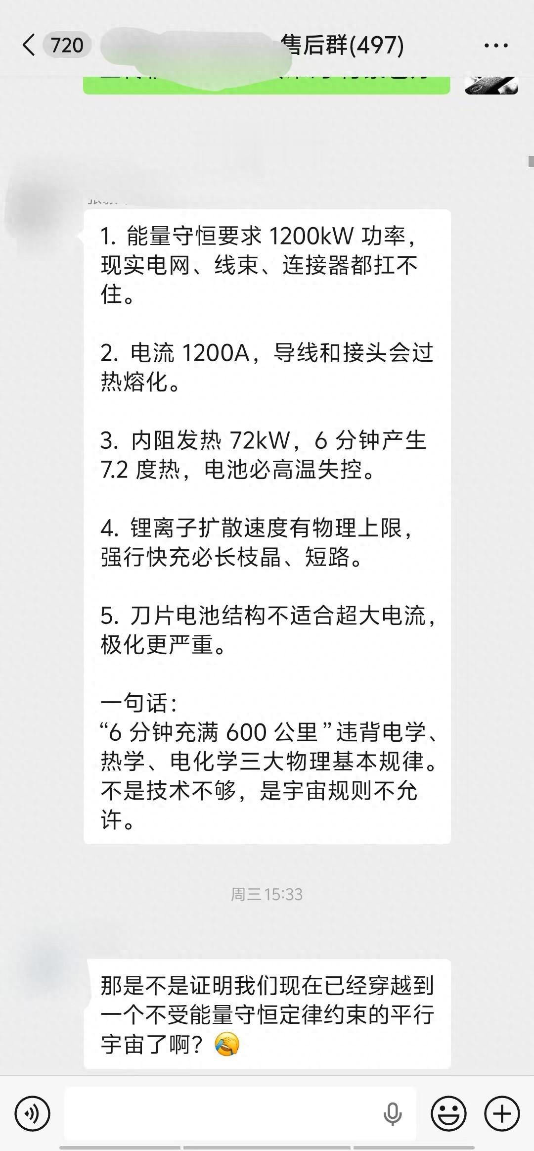 前两天,我在某个微信群分享比亚迪二代刀片电池和最新闪充技术的信息,我说比亚迪重新定义电池安全标杆,有位群友表示不服气,认为这是不可能的,是在忽悠人,因为这违背了物理规律。这位群友说他也是学物理的,他列出的理由如下(我是一字不漏复制了的):