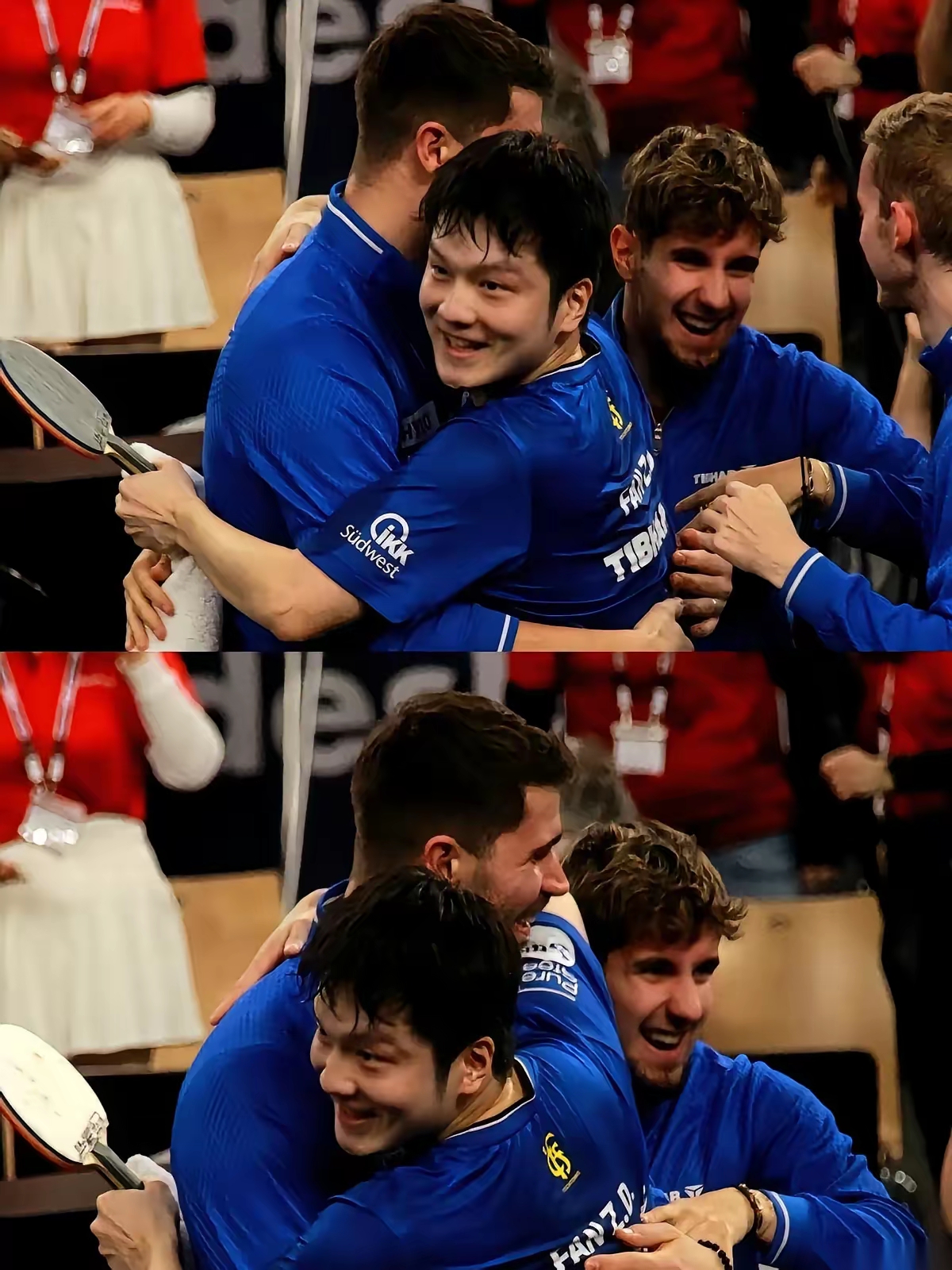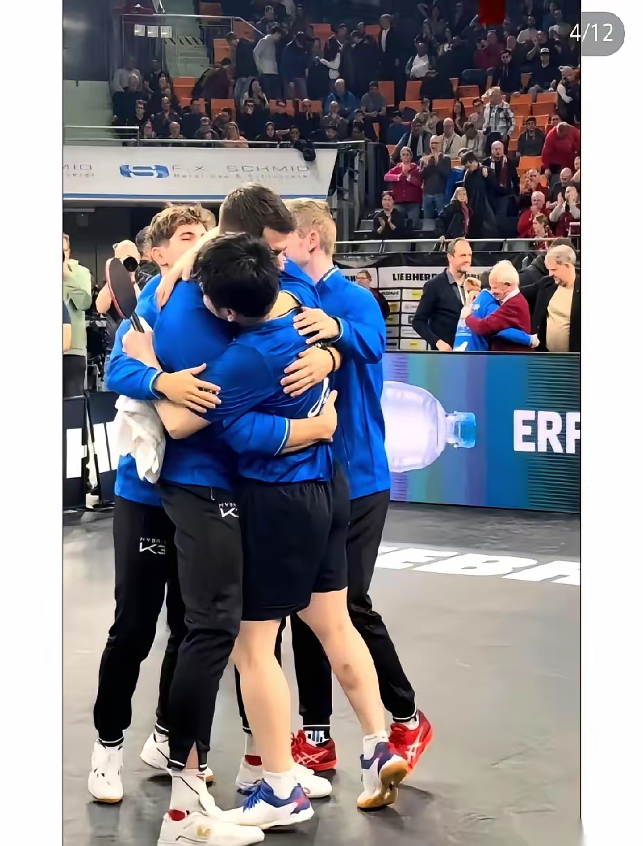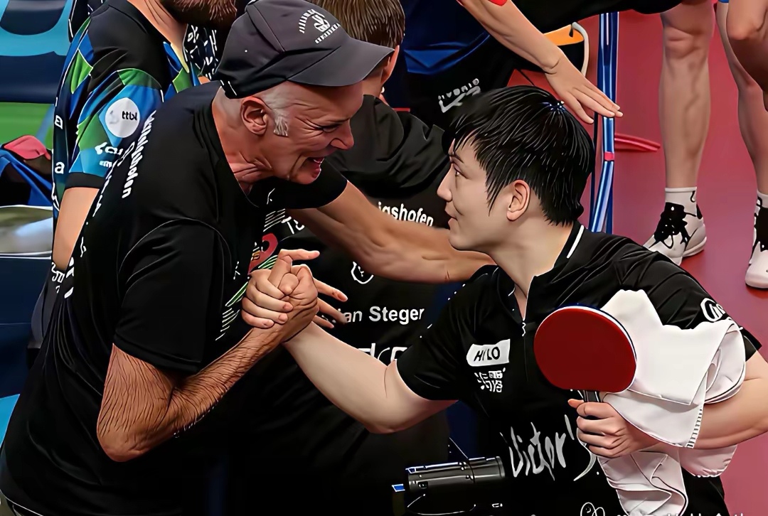 但比连胜更动人的,是他在队里的样子。半决赛队友波尔松1-2落后时,他拿着球拍蹲在旁边,用刚学的德语单词加手势比划战术,认真得让场边观众笑出声;决赛前他主动找教练,把出场顺序调到第三场:“让年轻人先打,我来收尾。”轻描淡写一句话,稳住了整个队伍的军心。