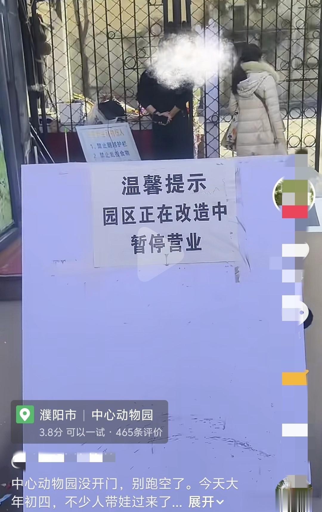 园门口还有提示牌,说濮阳动物园正在升级改造中暂停营业。