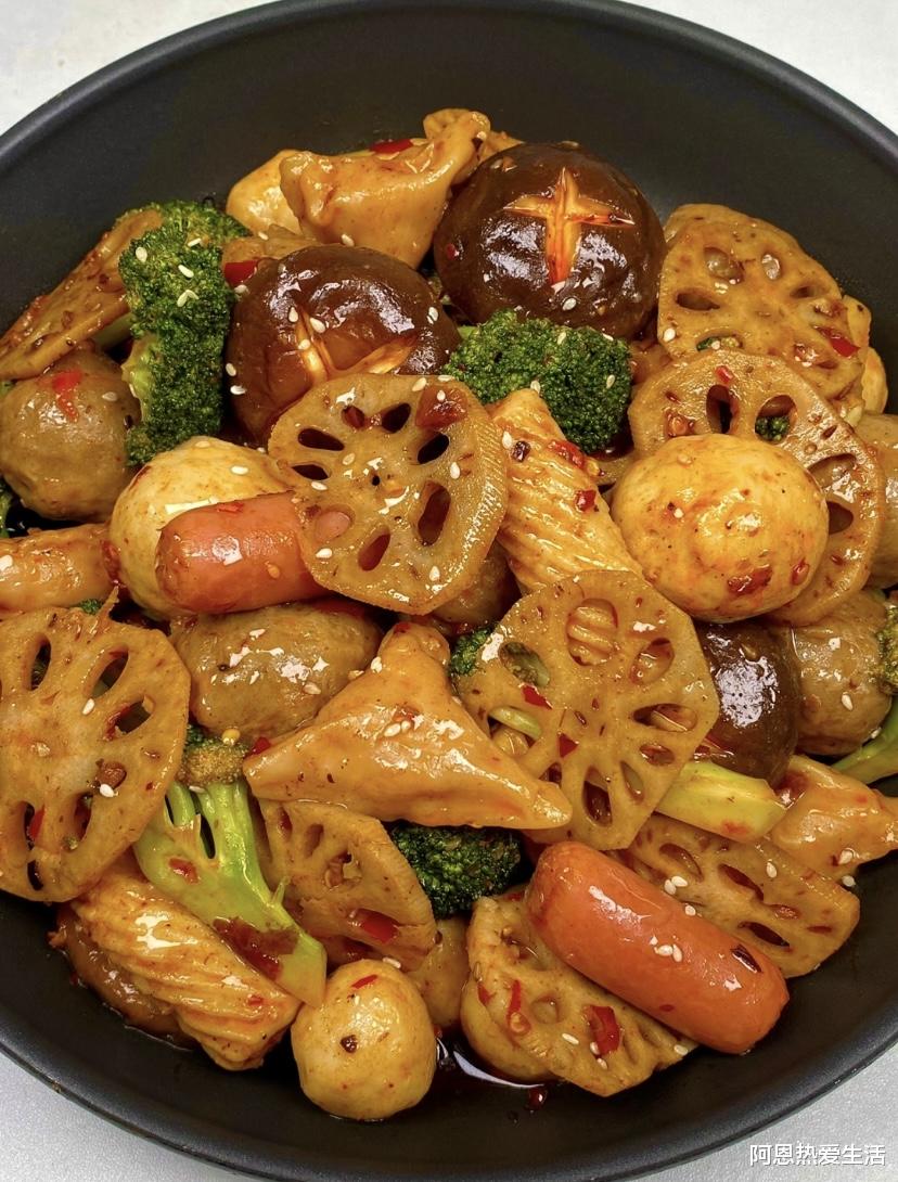 这时,把所有焯好水、煎好的食材一股脑倒进去!中火快速翻炒,让每一块食材都裹上那层红亮的酱汁。这个过程只需2-3分钟,你会亲眼见证一锅平淡的食材变身为一锅诱人的麻辣香锅。