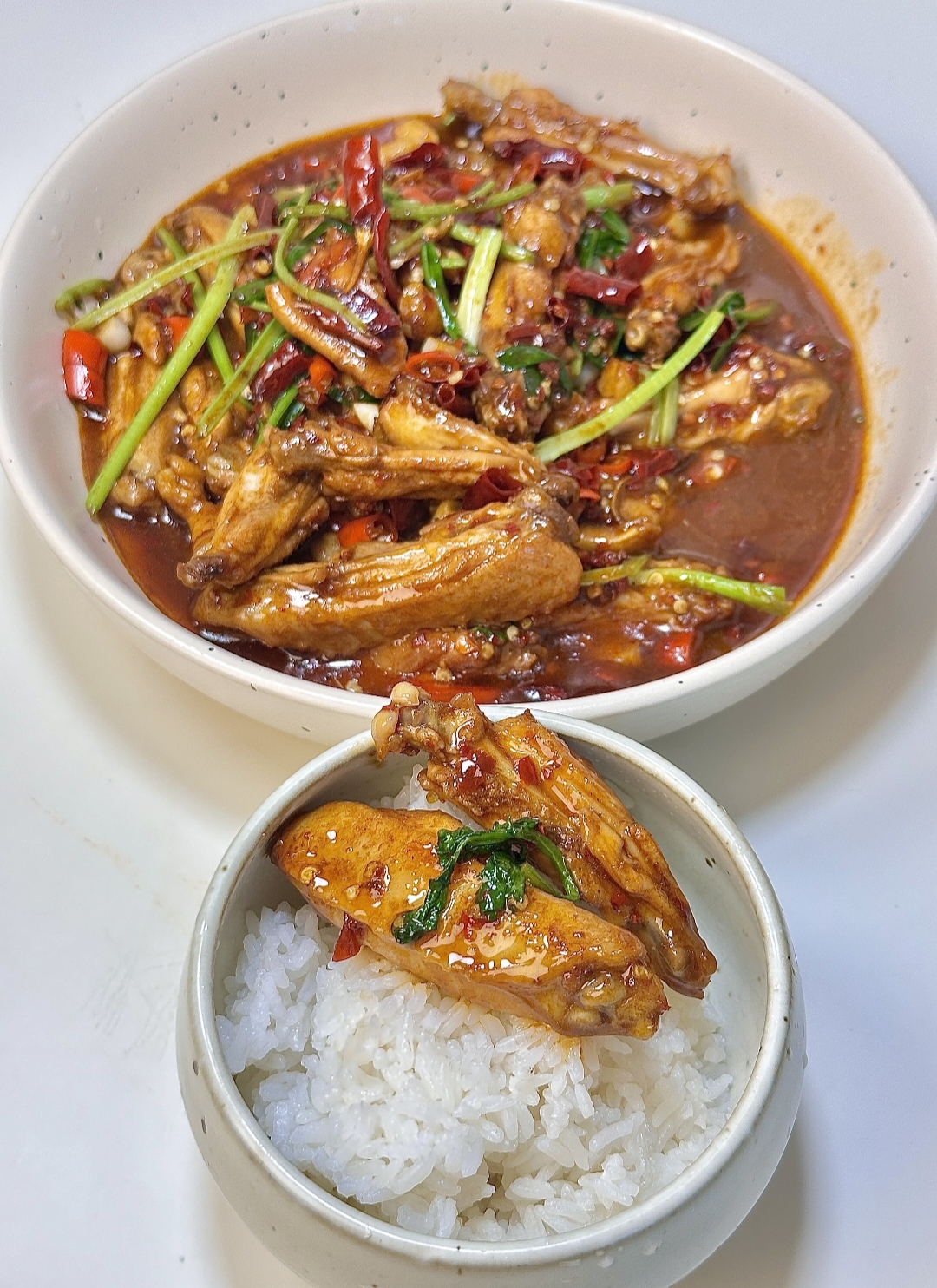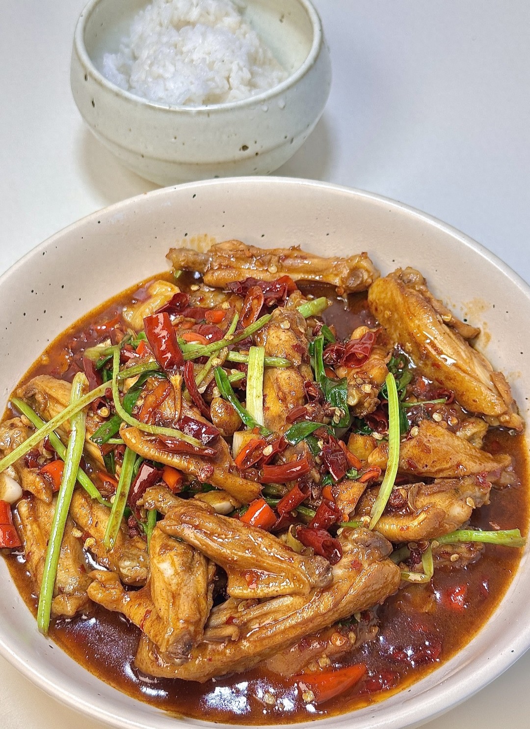 最精彩的时刻永远是最后——盘底那点浓稠的汤汁,我和弟弟总要争着拌饭。就着那香辣浓郁的汤汁,明明已经吃饱了,却能硬生生再塞下一碗饭。现在想想,那不只是鸡翅的味道,更是家的味道。