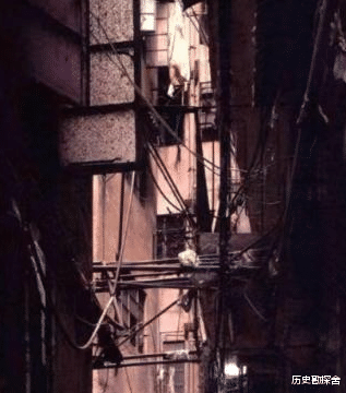 这是九龙城寨还没拆的时候拍的一张实打实的照片,照片里能看到,这儿的巷子特别脏乱,垃圾就那么随便堆在角落,也没人来打扫。