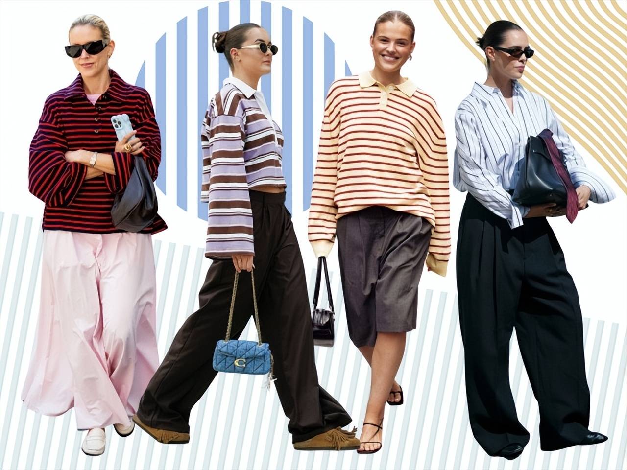 运动混搭风潮让条纹上衣成为必备单品,尤其是男士风格的Polo衫和橄榄球衫,搭配高腰裤或喇叭裤展现女性化效果。加入简约配饰,打破运动感的粗犷,增添柔美与精致,既有个性又不失优雅。