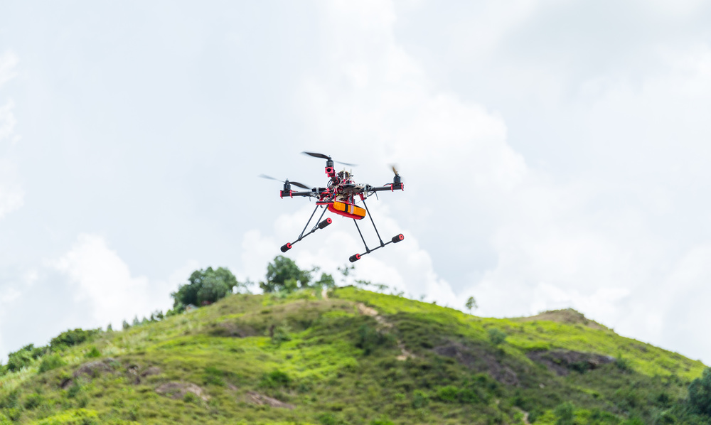 无人机在户外自然环境中进行飞行测试,受天气条件制约明显。图源:图虫创意
