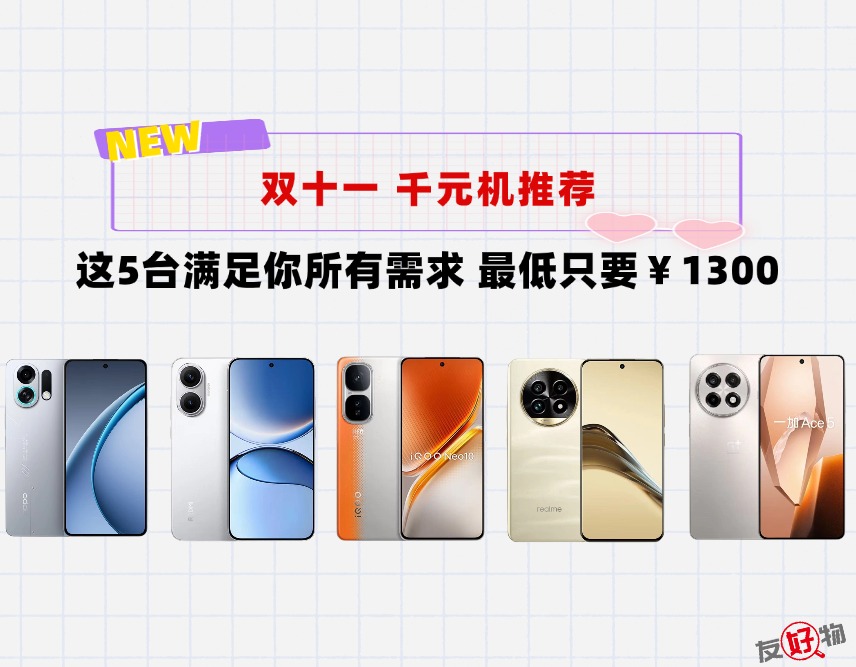 双十一到了,千元机才是主战场。尤其是叠加了国补之后,个个都是真香机。今天友友就给大家整理了5款可以闭眼入的高性价比千元机,可以根据自己的用机需求闭眼冲!