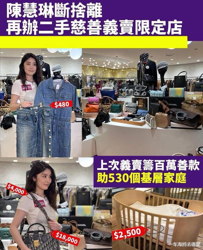 众所周知,做慈善的明星很多,其方式也很多,景甜就在咸鱼出售二手商品,拿收入所得用来捐款。近年来渐渐淡出娱乐圈的陈慧琳也是如此,4月4日就在香港新港中心商场开始了持续一周的义卖活动。