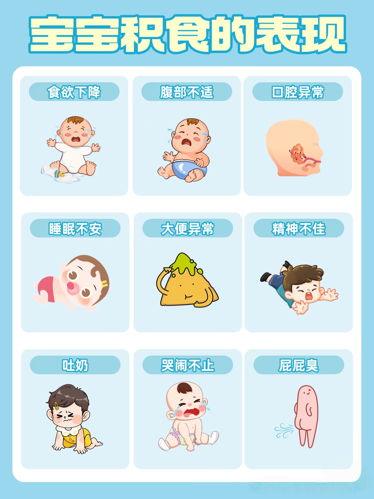 今天就带你认清宝宝积食的9个信号,看看你家娃中了几条: