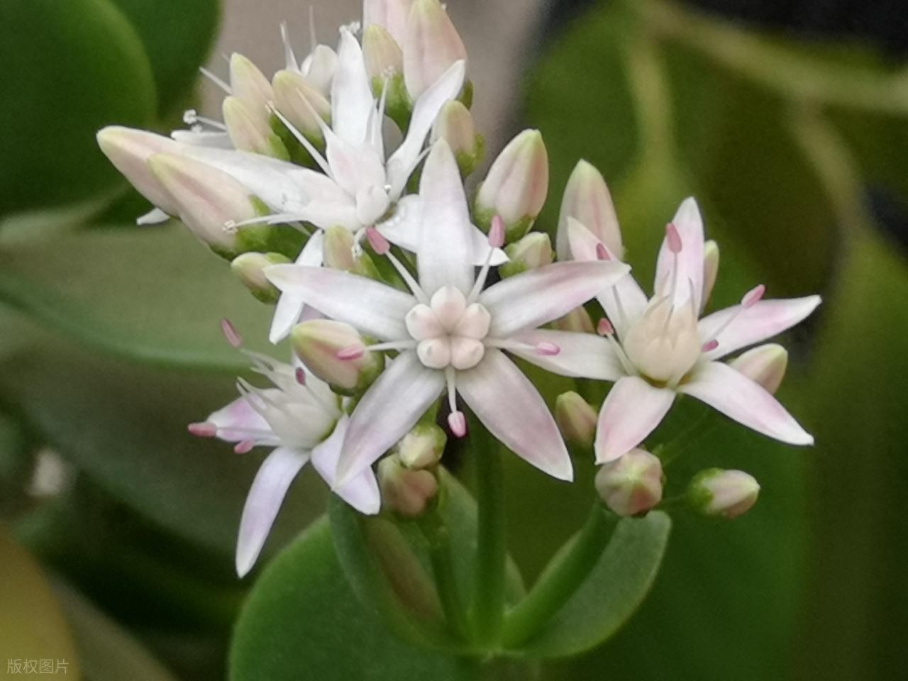 三、精准水肥:浇水看干湿,施肥抓时机玉树叶片储水能力强,浇水多了烂根,浇水少了干叶,掌握“见干见湿”原则,结合催花肥,开花更有保障。