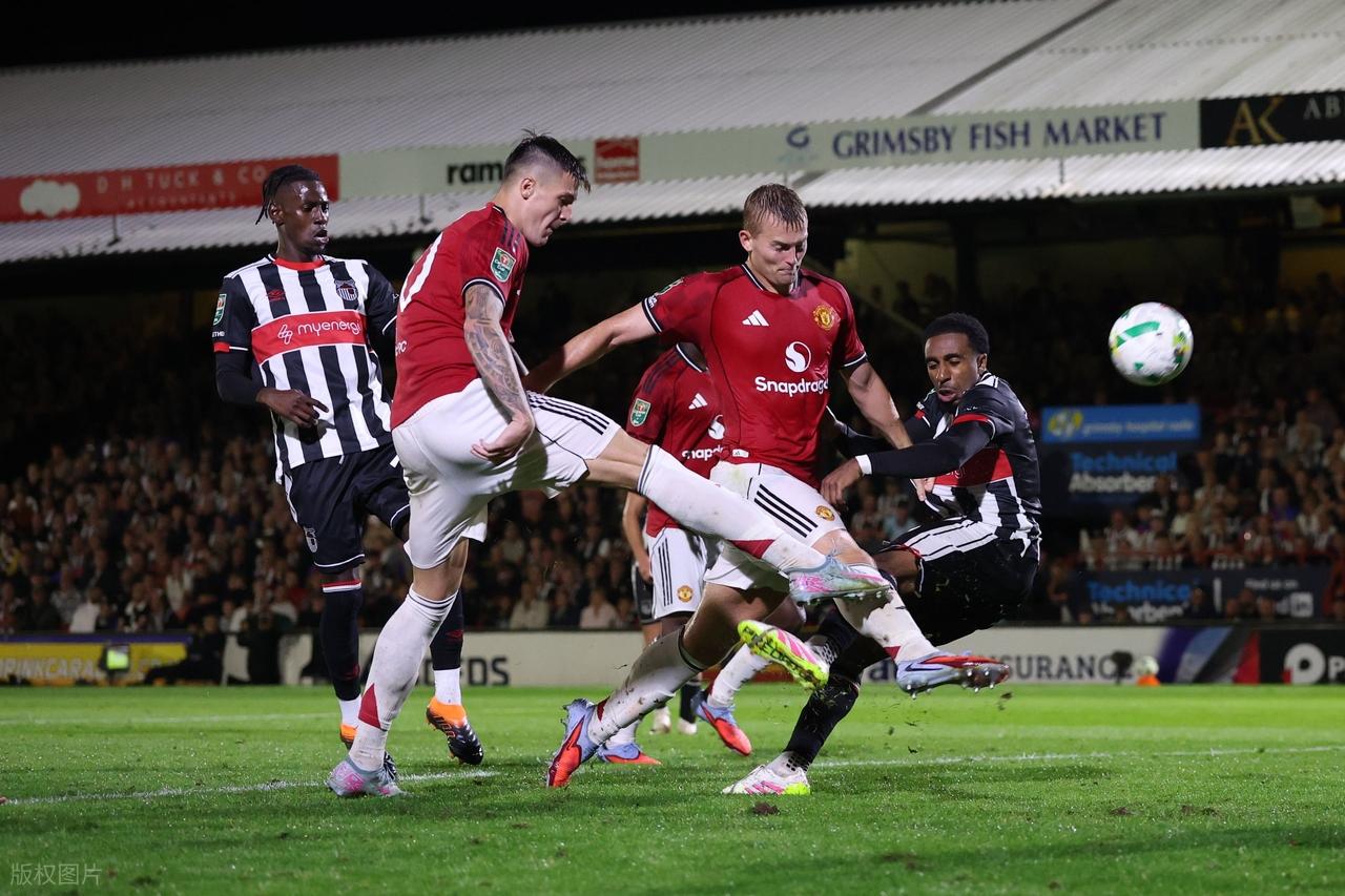 从比赛过程来看,曼联开场就陷入被动。上半场,曼联中场失误被断,门将奥纳纳出击失误,短短时间内就被格林斯比连入两球。下半场,曼联如梦初醒,陆续换上主力加强进攻,姆伯莫和马奎尔分别建功,将比分扳平。比赛进入残酷的点球大战,命运的天平最终没有向曼联倾斜,库尼亚、姆伯莫先后失点,曼联就此被淘汰出局。
