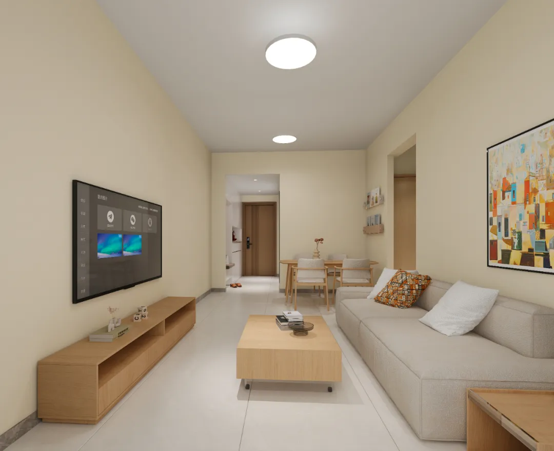 室内设计围绕“惠民好房”定位,以“现代简约、实用舒适、人文关怀”为核心理念,致力于为住户打造一个高品质、高效率且充满温度的生活空间。室内装饰设计强调实用性与舒适性并重,运用经济适用的装饰材料、简洁明快的设计手法,营造宁静、放松的居家氛围。
