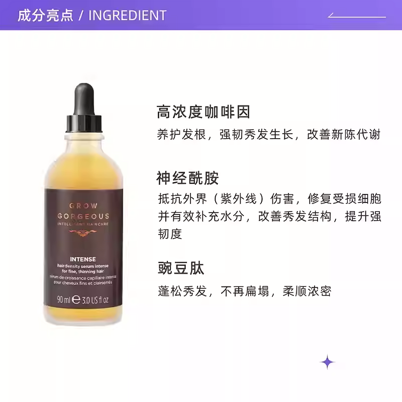 推荐理由:这个品牌以其高效的增发精华液风靡全球。加强版含有高达5%的咖啡因复合物及乙酰基四肽-3等活性成分,旨在显著增加头发密度和直径。它的质地是稍浓稠的精油状,但按摩后吸收很快,香味高级。适合脱发问题较为明显,且追求“猛药”级别效果,希望让头发视觉上变得更浓密的人群。