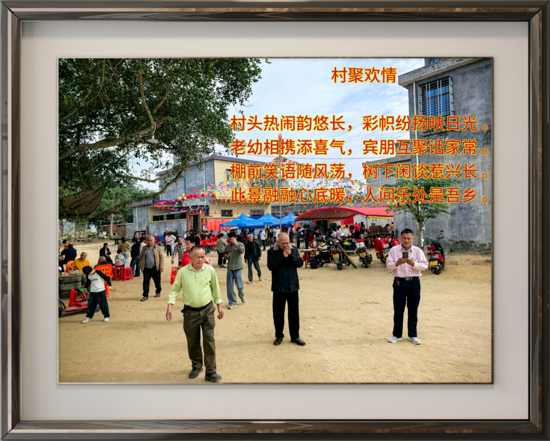 村头热闹韵悠长,彩帜纷扬映日光 。