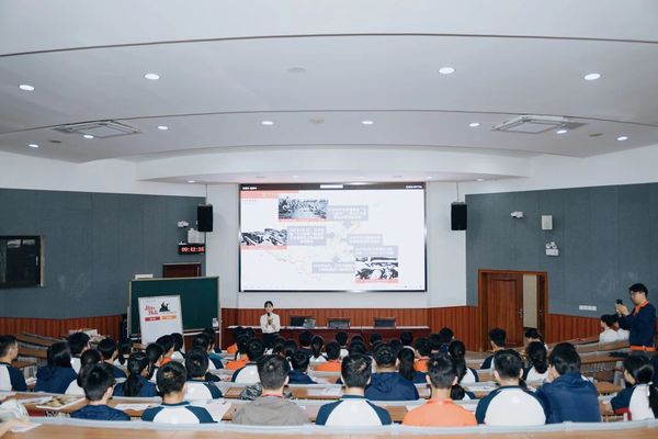 考察後半程,師生們的視角從抗戰歷史延伸至現實發展。在重慶科技館,通過互動展項體驗前沿科技,直觀感受國家科技發展的強勁動能;漫步中山四路、洪崖洞及解放碑,感受重慶融合歷史底蘊與現代發展的城市風貌;來到重慶工業博物館,透過工業遺產與發展成果,看到國家工業從艱難起步到現代化發展的轉變;參訪宗申動力,從技術人員的講解中,了解新能源動力的研發成果;走進重慶三峽博物館,三峽工程背後的國家戰略意義,使師生們對「國之大者」有了更真切的體悟;駐足重慶人民大禮堂前,其融匯傳統宮殿氣韻與現代工程技術的建築風格,承載著重慶人民對「國泰民安」的深切祝願……這一路走訪,讓師生們真切體會到:抗戰精神從未因時光流轉而褪色,而是化作推動城市建設、支撐國家復興的強大動力,深深融入每一位國人的精神血脉之中。