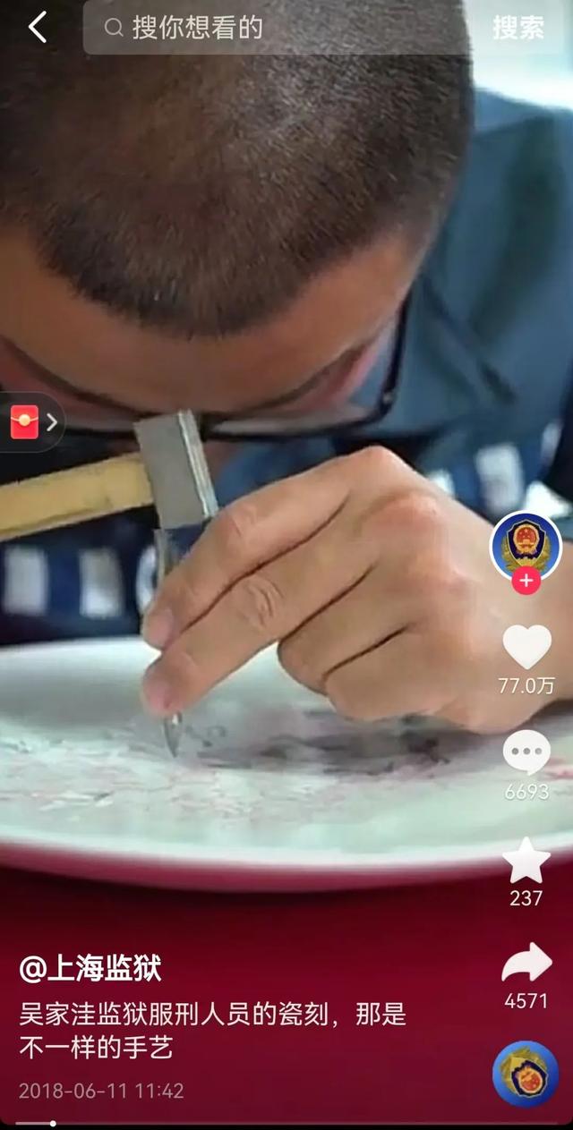 上海监狱发布的服刑人员瓷刻,可是真正的非遗,该条获得70多万点赞。