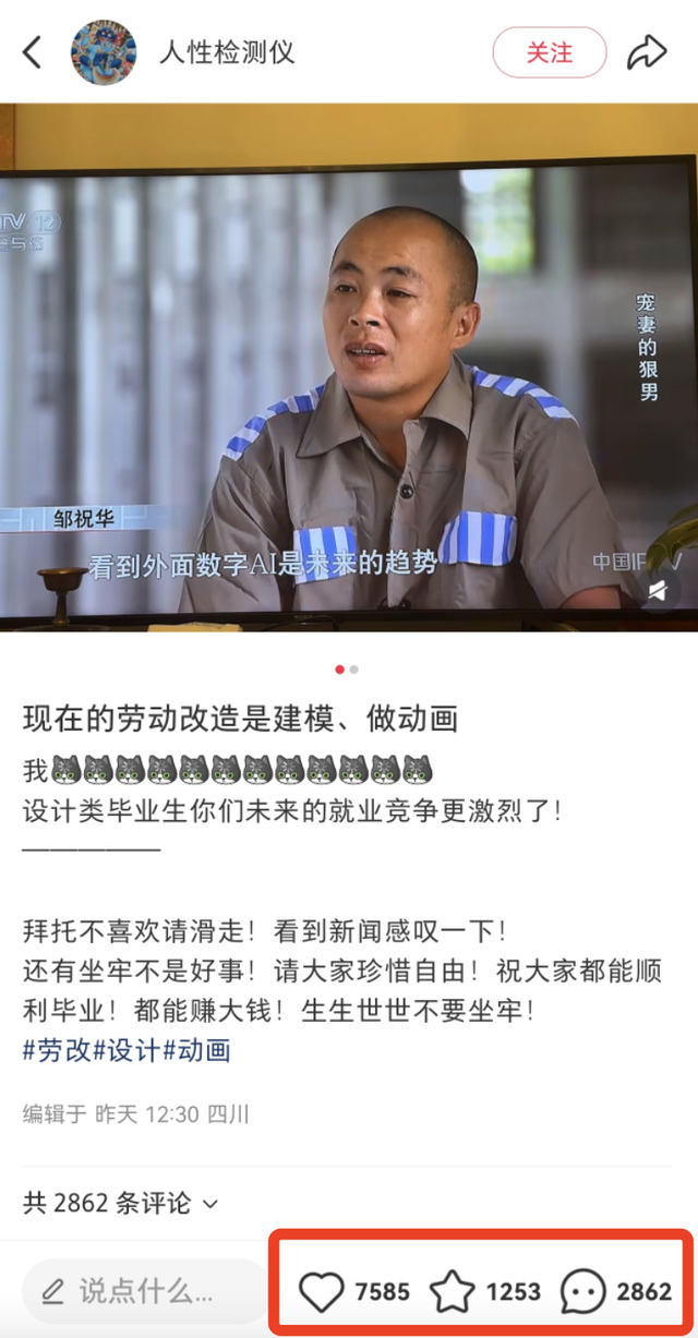 据邹祝华所说,因为监狱经常组织看《新闻联播》,他也了解到数字AI是未来趋势,从建模到动画,他也极有兴趣。