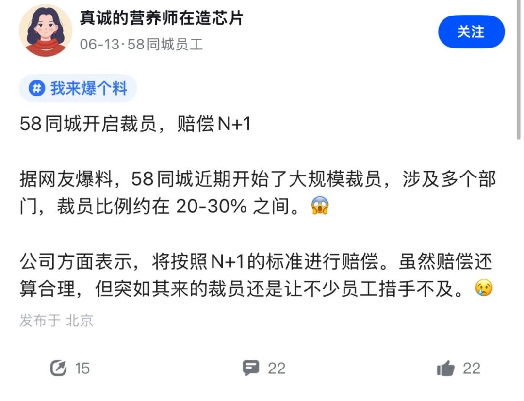 为控制成本,58同城已进行数轮大规模裁员。2023年5月,据《第一财经》报道,58同城裁员30%-50%。2025年6月,据《新晚报》援引脉脉博主消息称,58同城再次大规模裁员,裁员比例为20%-30%。