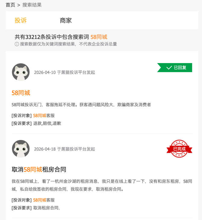 事实上,“幽灵订单”正是58同城乱象丛生的典型缩影。在消费者服务平台黑猫投诉以“58同城”为关键词检索,可以发现约3.32万条投诉,诸多用户控诉称,在58同城被商家欺骗、客服处理不当、付费推广无效。