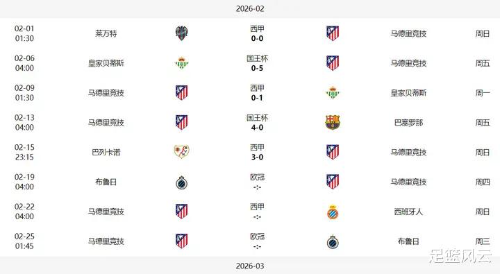 我也观察过马竞的赛程,他们输球会有个特点,就是多线作战情况下往往无法持续。一旦欧冠、国王杯、西甲的比赛过于密集,他们一定会翻车。